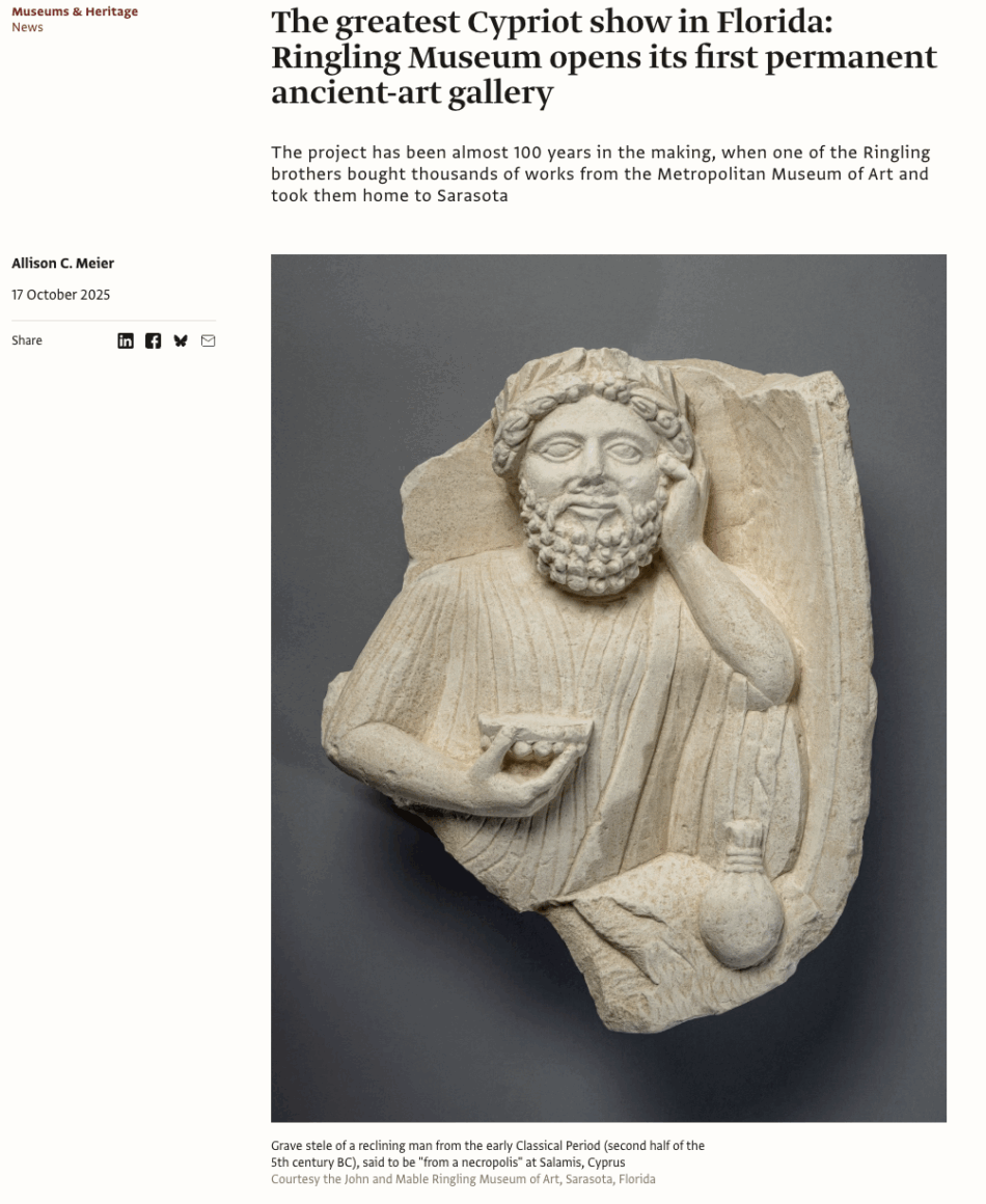 For the Art Newspaper, I reported on a new gallery of ancient art 100 years in the making at the John and Mable Ringling Museum of Art in Sarasota, Florida. It was collected by John Ringling of the Ringling Bros circus. Read the story here.
