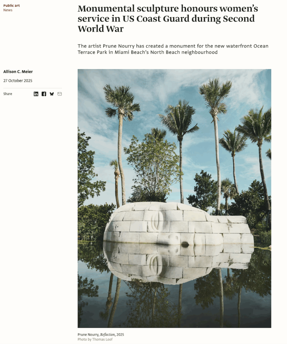 There’s now a colossal head in Miami Beach commemorating the overlooked history of women’s service in the Coast Guard during WWII. It was sculpted by artist Prune Nourry. I spoke to Nourry about the project for the Art Newspaper, read all about it here.