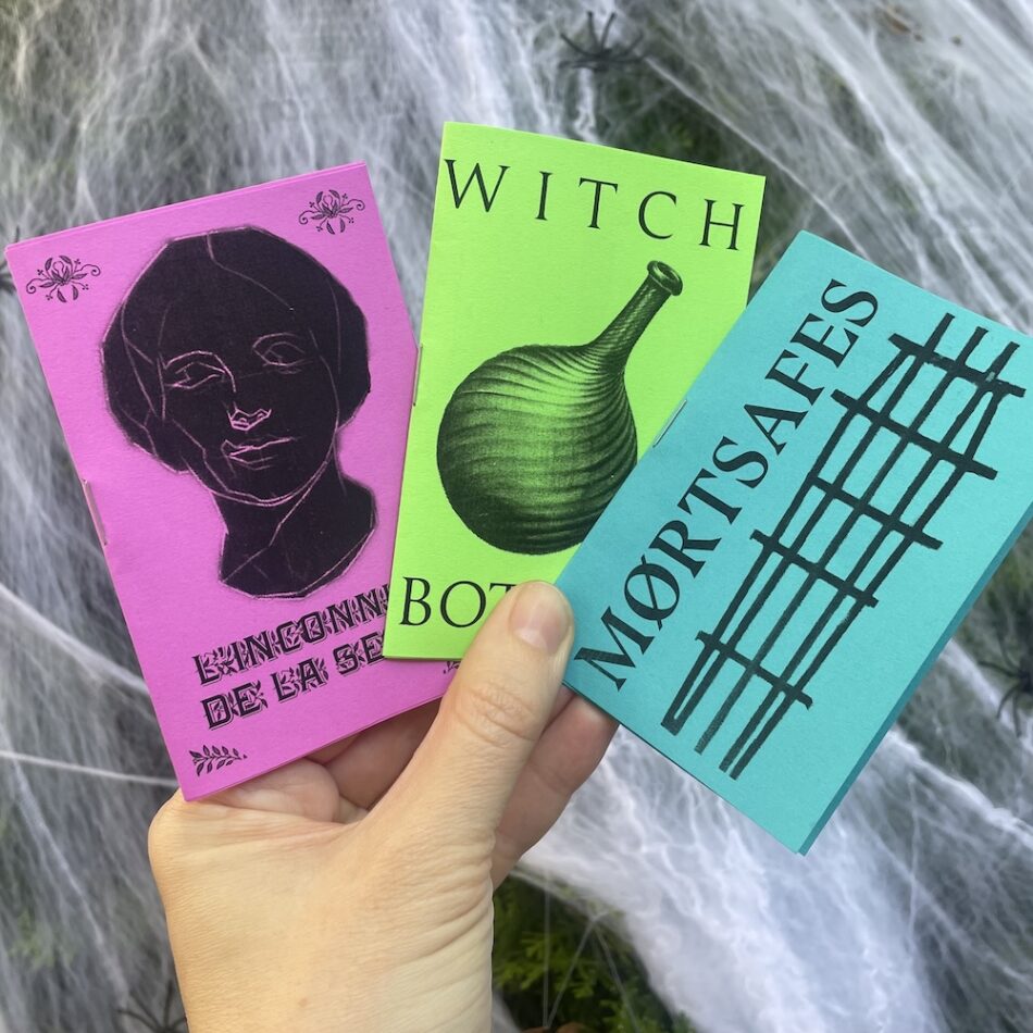 I wanted to make some smaller zines for fun timed with the Halloween season. These try out something I haven’t before which is folding one page into a 14-page little booklet. The selected spooky topics are L’Inconnue, the drowned muse of Paris; the protective lore of witch bottles; and mortsafes, made to safeguard against graverobbing. You can find them all on my Etsy!